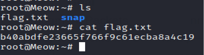 Signing in on telnet using “root”, and we find that we don’t need to use a password. Listing the files we find the flag and reading out the file we have the flag we can submit to the task: