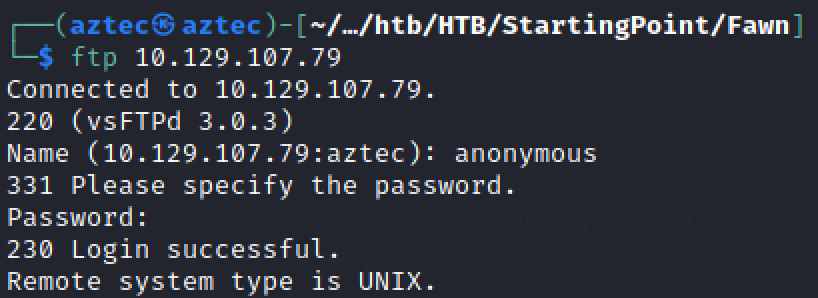 When connecting to the target we can login as an anonymous user and have either no password or just a random password, we get logged in successfully:
