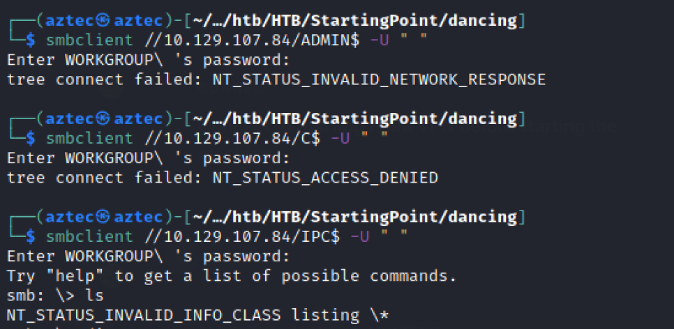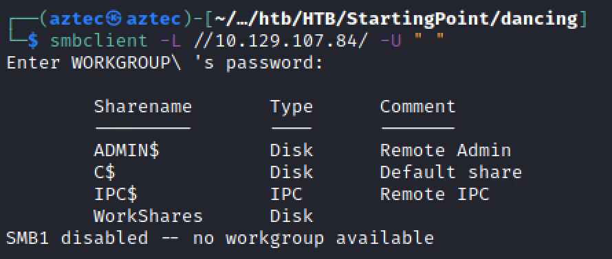 Seeing what I can actually connect to, I noted I could not connect to “ADMIN$”, “C$” and “IPC$”. But I successfully connect to “WorkShares”: