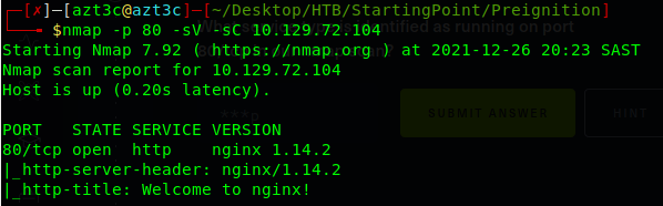 4. What service name and version of service is running on port 80/tcp in our nmap scan?
